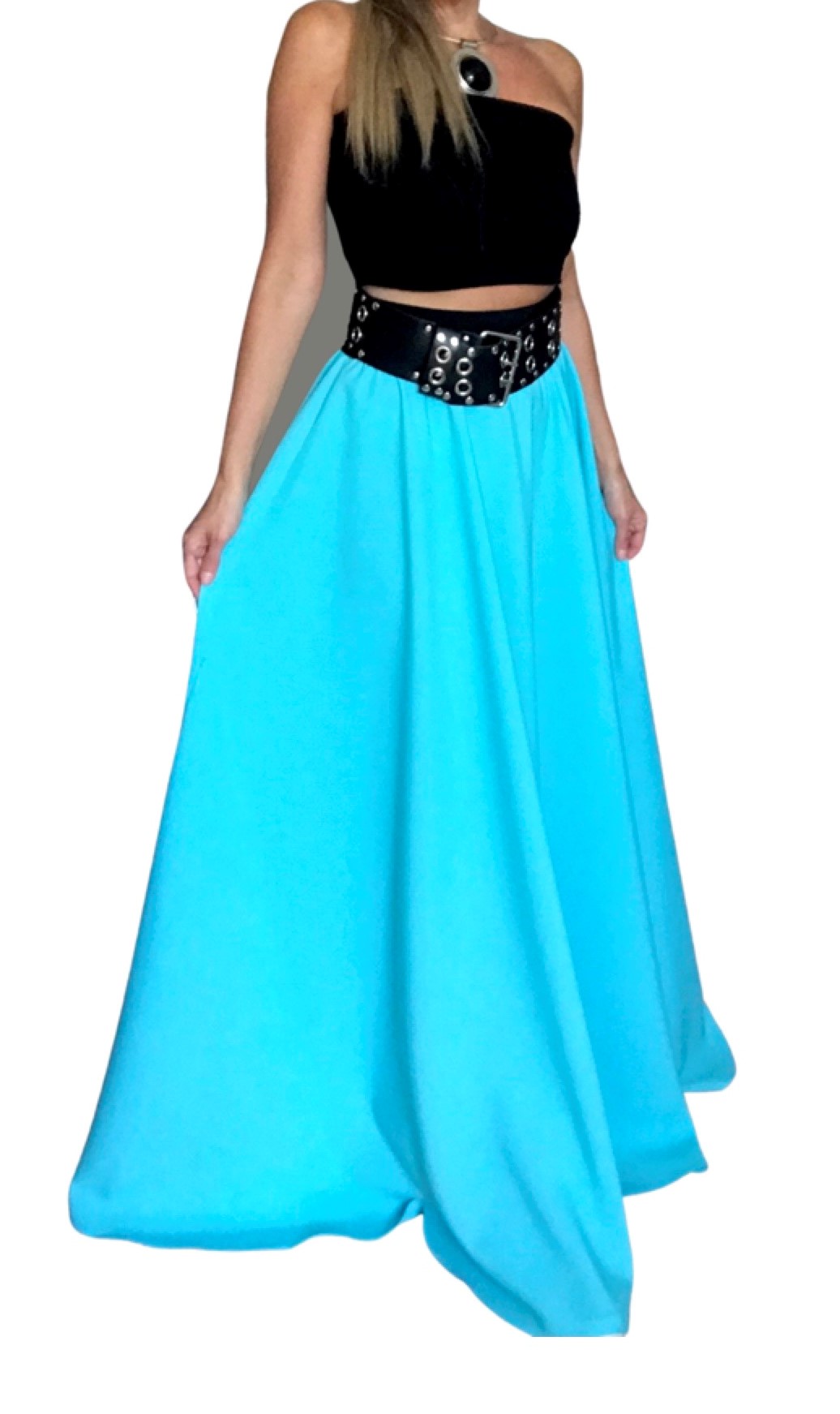 DLOUHÁ SUKNĚ krásného vzhledu v 1/2 kolovém střihu (na jaro, na léto i do společnosti) ve výrazné a přitom jemné tyrkysové barvě. Opravdu viditelná barva, ve které budete nepřehlédnutelná !
