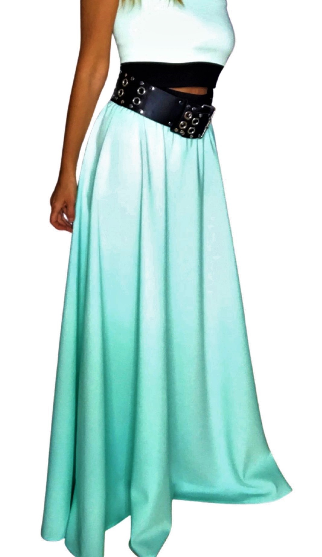Dlouhá letní sukně 1/2 kolového střihu (na jaro, na léto i do společnosti) v jemné a romantické mentolové barvě. Působí jemně a velmi letně !