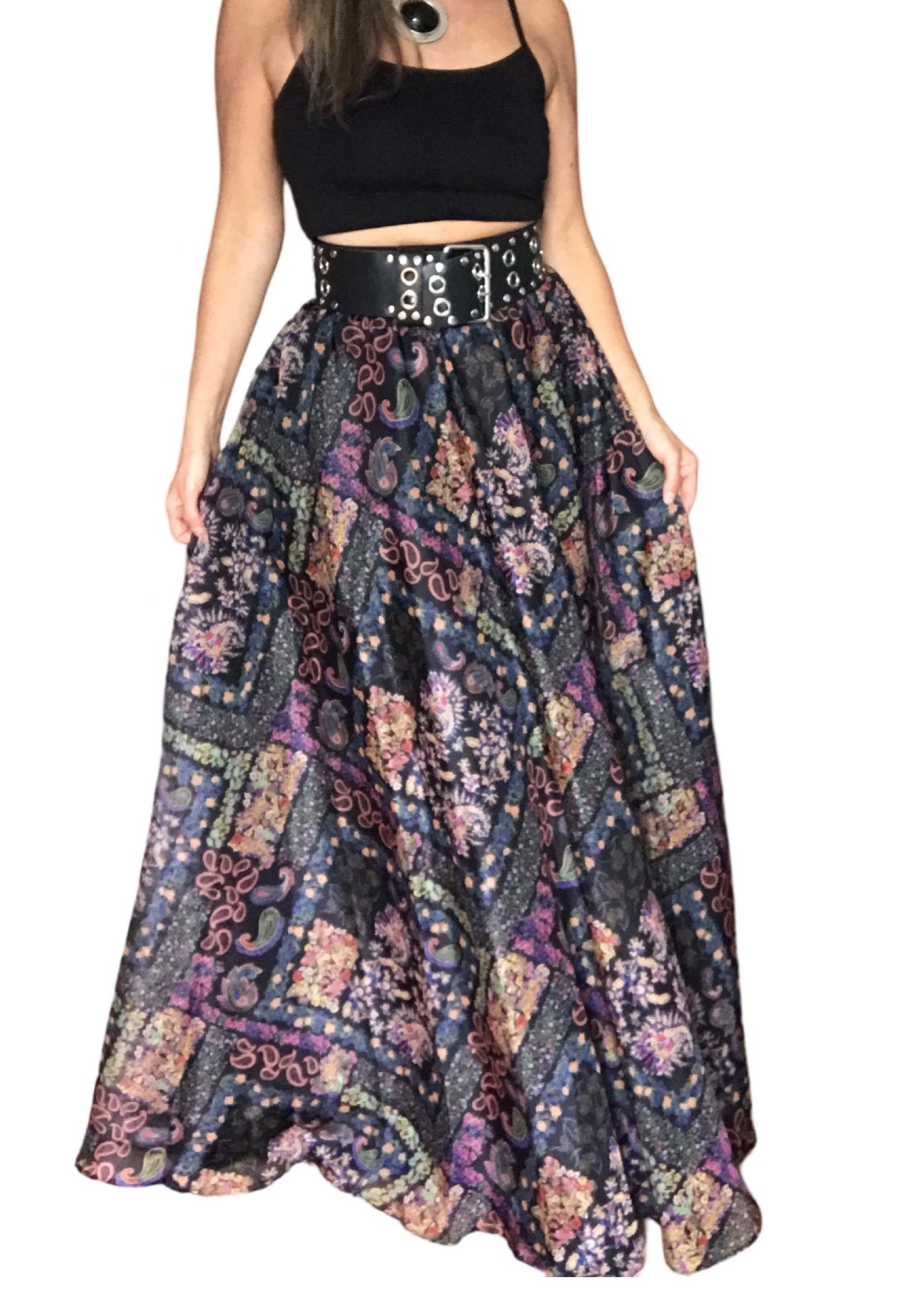 DLOUHÁ LETNÍ SUKNĚ - maxi sukně v elegantní černé barvě s pestrým jemným bareveným potiskem, Z lehoučkého šifonu, Sukně je s lehoučkou podšívkou, neboť se jedná o velmi lehký a průsvitný materiál - šifon. Látká je hladká, klouzavá, super vzdušná. Sukně je vhodná pro každou příležitost. Ideální pro letní období do horkých dnů a na dovolenou. Kombinovatelná zejméne s bílou, černou, ale i dalšími letními barvami Opravdu nepřehlédnutelná a jedinečná !! Cítíte se v ní opravdu jako dáma a princezna v jednom. Krásně se nosí, je lehká a vzdušná. Vhodná jak pro běžné nošení, tak i pro společenské události - záleží jen na vás, jak ji zrovna budete chtít vzít. Ideální pro běžné nošení s krátkou bundou, tričkem, tílkem, či svátečním topem.