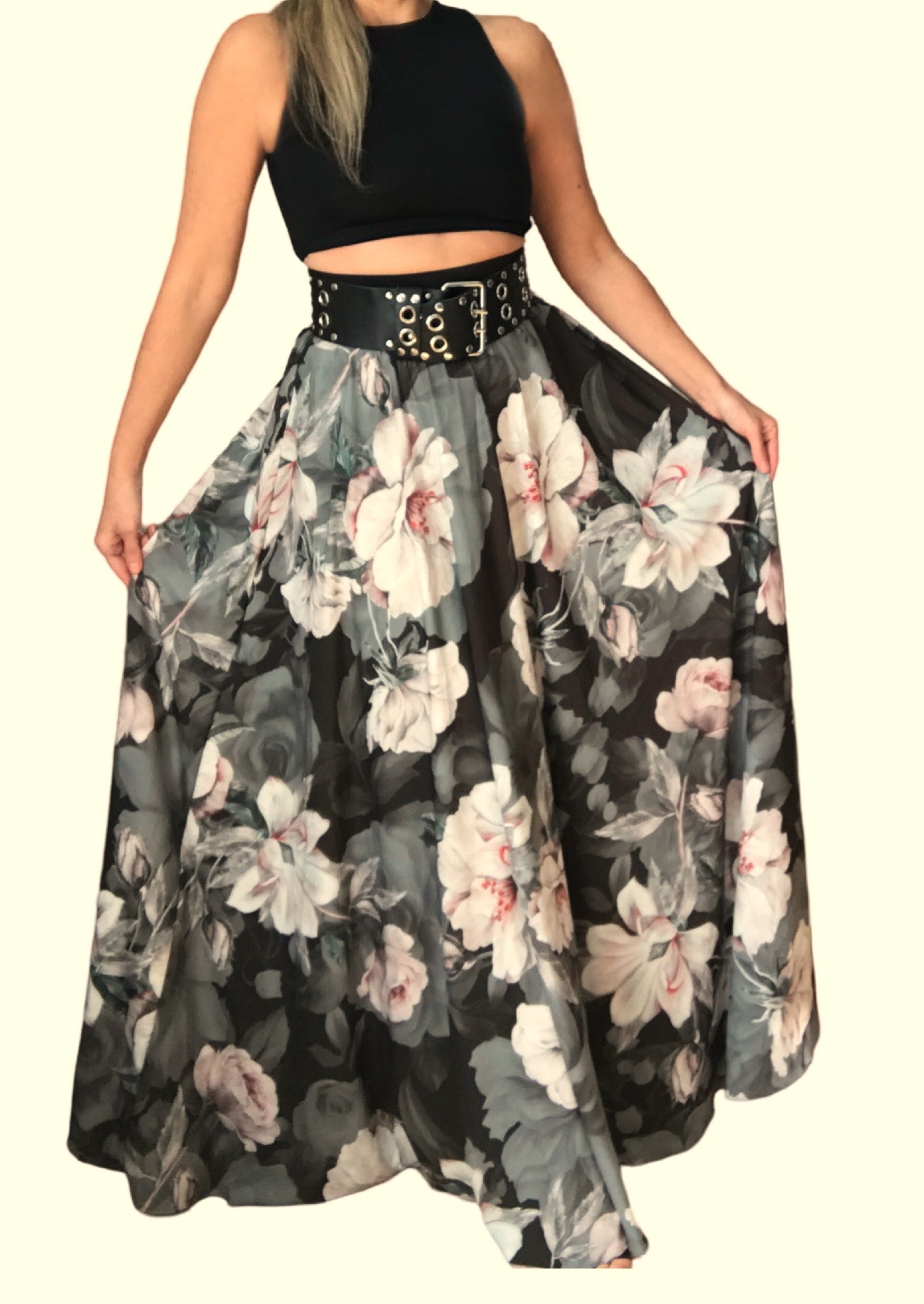 DLOUHÁ LETNÍ SUKNĚ LUXUSNÍHO VZHLEDU - maxi sukně v jemného umělého hedvábí s potiskem velkých květin na tmavším šedo-hnědo-černém podkladu. Je sexy, elegantní a NEPŘEHLÉDNUTELNÁ. Sukně je bez podšívky, z lehoučkého umělého hedvábí, s kvalitním potiskem a je velmi příjemná na dotek a nošení. Je vhodná i do nejteplejších dnů, pro každou příležitost, kombinovatelná zejméne s bílou, černou, odstíny které jsou na sukni. Látká je vzdušná. Opravdu nepřehlédnutelná a jedinečná !! Velmi elegantní, moderní i sexy. Vezmete ji kamkoliv - záleží jen na vás, jak ji zrovna budete chtít vzít. Ideální pro běžné nošení s krátkou bundou, tričkem, tílkem, či svátečním topem. ČESKÝ VÝROBEK - ČESKÝ DESIGN !