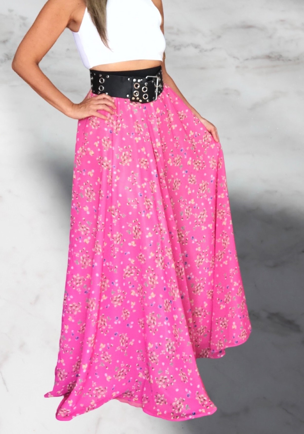 DLOUHÁ LETNÍ SUKNĚ  - maxi sukně v krásné růžové barvě s potiskem drobných kvítků,  Sukně je s lehkou podšívkou, neboť se jedná o velmi lehký a průsvitný materiál - šifon. Látká je hladká, klouzavá, super vzdušná. Sukně je vhodná pro každou příležitost. Ideální pro letní období do horkých dnů a na dovolenou. Kombinovatelná zejméne s  bílou, černou, růžovou, ale je monžé kombinovat i s dalšími pastelovými letními barvami. Opravdu nepřehlédnutelná a jedinečná !! Cítíte se v ní opravdu jako dáma a princezna v jednom. Krásně se nosí, je lehká a vzdušná.  Vhodná jak pro běžné nošení, tak i pro společenské události - záleží jen na vás, jak ji zrovna budete chtít vzít. Ideální pro běžné nošení s krátkou bundou, tričkem, tílkem, či svátečním topem.