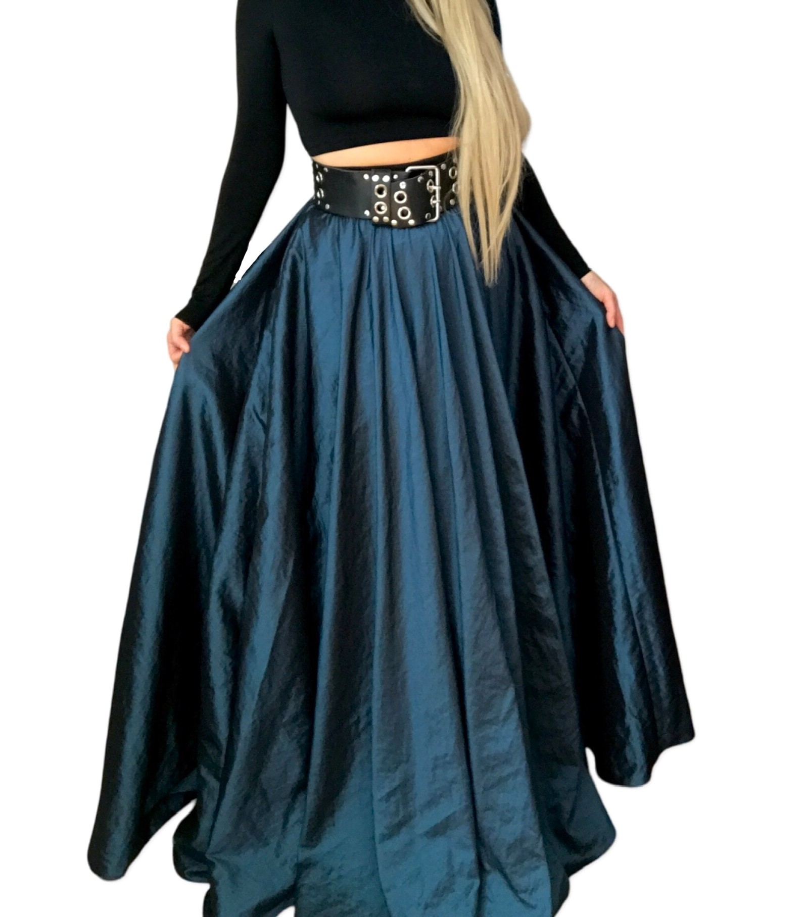 LUXUSNÍ DLOUHÁ SPOLEČENSKÁ SUKNĚ velkého objemu, plnokolová, bohatá a opravdu krásná v krásné elegantní petrolejové barvě.