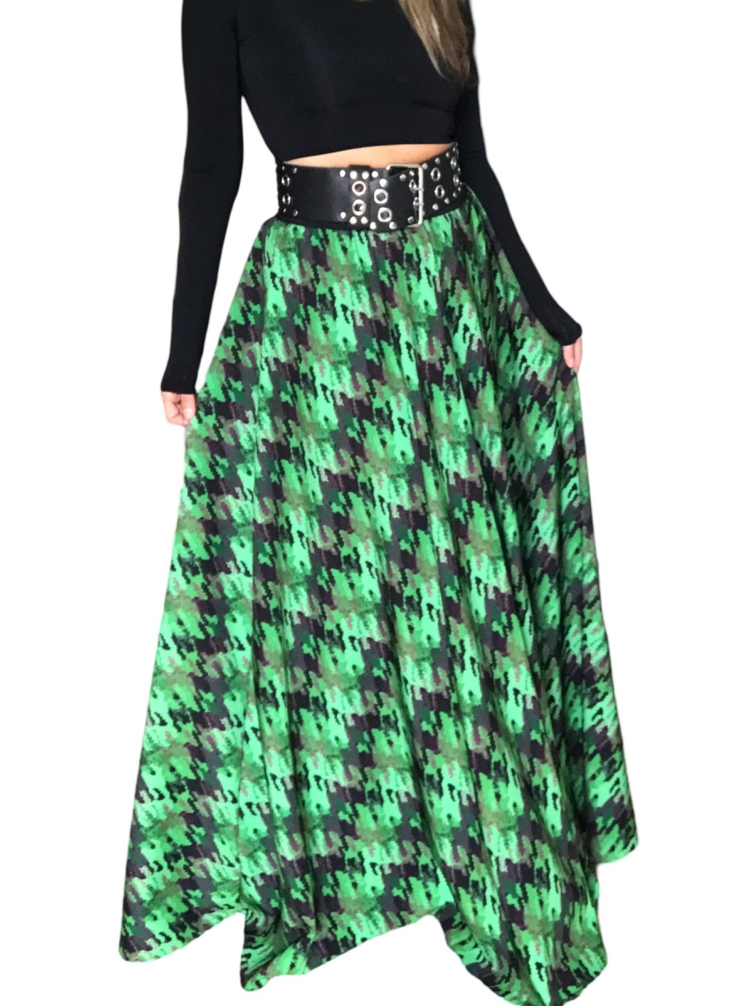 DÉLKA SUKNĚ - sukně je dlouhá standardně při velikosti S/M/ dlouhá cca 111 cm + 8 cm pasová guma (ta jde obvykle nad pas jako opasek) - odpovídá postavě cca 172 cm + 10 cm podpatky (viz ilustrativní foto). Možnost délky se s ohledem na střih snižuje v velikostí modelu. Při větším obvodu pasu je menší možnost délky. Sukni délkově přizpůsobujeme zdarma vždy dle vašeho požadavku a vaší postavy.