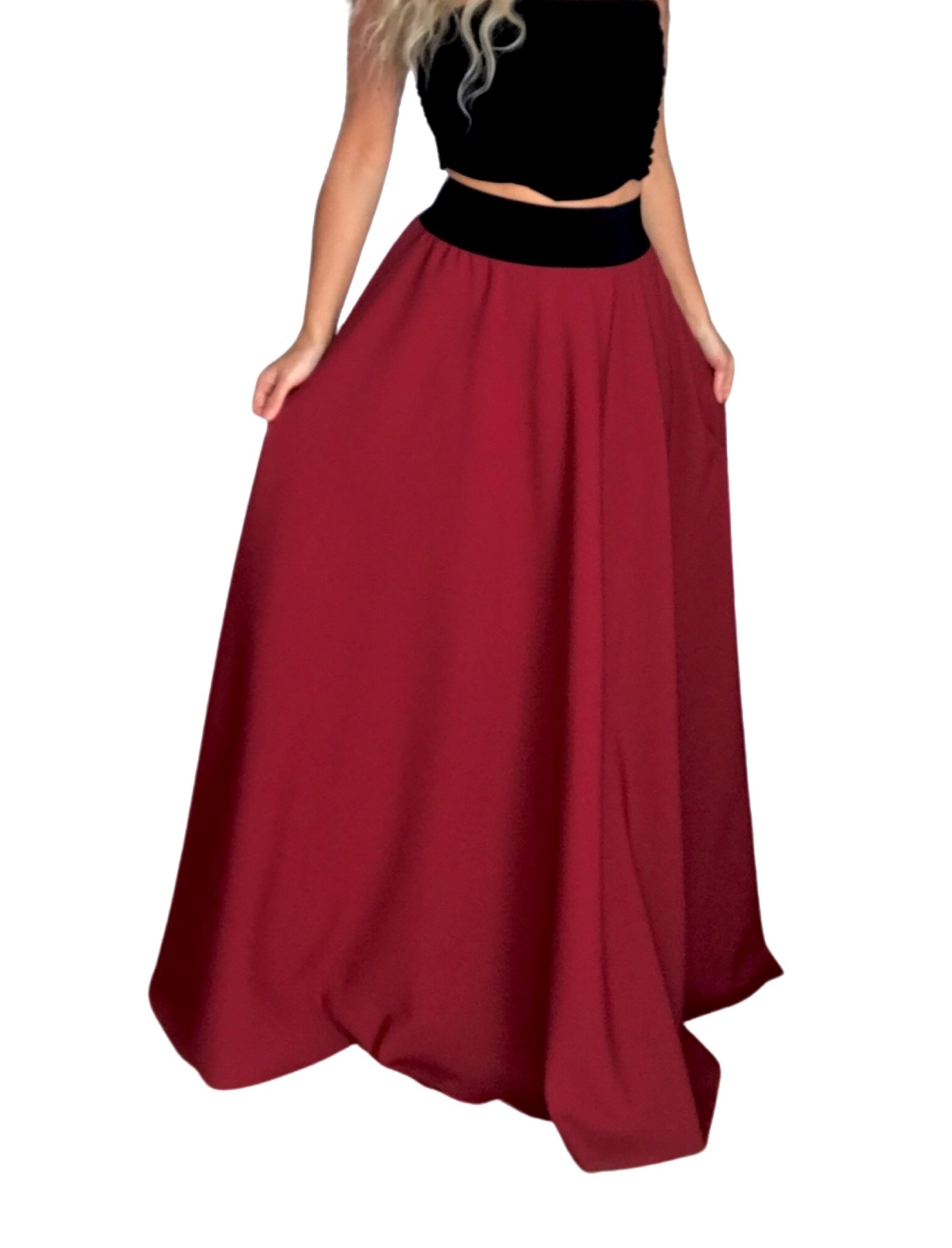 KRÁSNÁ DLOUHÁ SUKNĚ elegantního vzhledu v 1/2 kolovém střihu (na jaro, na léto i do společnosti) ve světlejší vínové barvě !