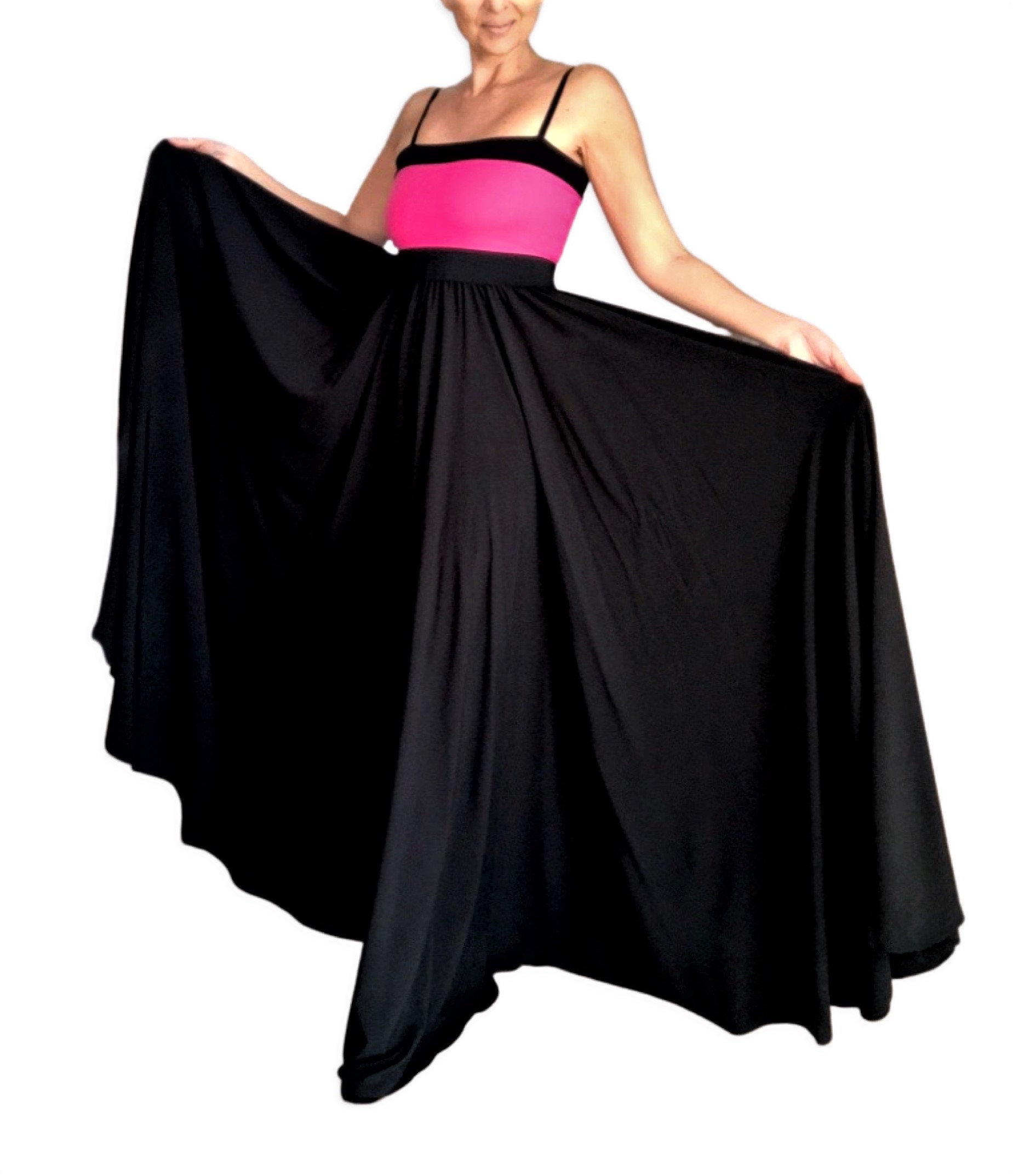 DLOUHÉ LETNÍ ŠATY v elegantní a sexy černé barvě v kombinaci s růžovým (cyklamenovým) horním topem. Luxusní kousek - šaty jsou z umělého hedvábí, velice lehké, jemné.