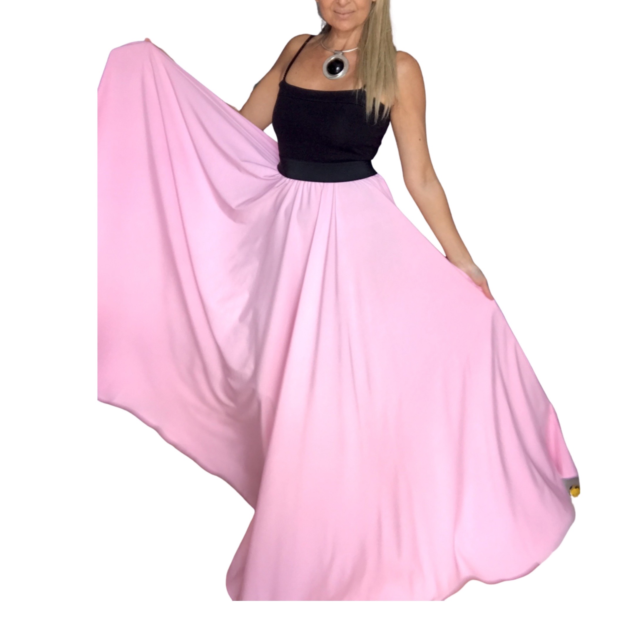 KRÁSNÉ A LUXUNÍ dlouhé šaty v jemné baby růžové barvě z hladkého umělého hedvábí.