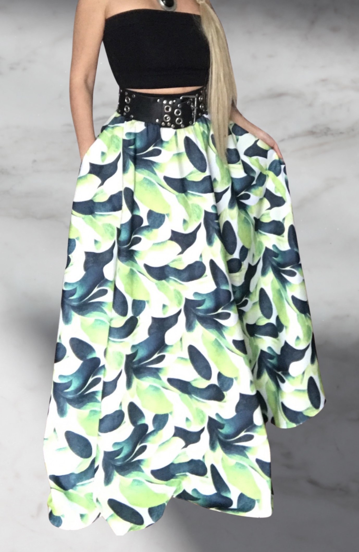 LETNÍ DLOUHÁ SUKNĚ LUXUSNÍHO VZHLEDU - maxi sukně v krásné kombinaci bílé a odstínů zelené od limetkové až po tmavě zelenou. Je sexy, elegantní, výrazná a NEPŘEHLÉDNUTELNÁ. Sukně je z lehké kostýmovky (vzdušná), je vhodná pro každé roční období i pro každou příležitost v zajímavém potisku širokých průhů, kombinovatelná zejméne s bílou, černou a letními barvami v odstínu žlutá a zelená. Opravdu nepřehlédnutelná a jedinečná !! Velmi elegantní, moderní i sexy. Pro běžné nošení i pro společenské události - záleží jen na vás, jak ji zrovna budete chtít vzít. Ideální pro běžné nošení s krátkou bundou, tričkem, tílkem, či svátečním topem. Sukně má boční kapsy ztracené ve švu (může být i bez nich) ČESKÝ VÝROBEK - ČESKÝ DESIGN !